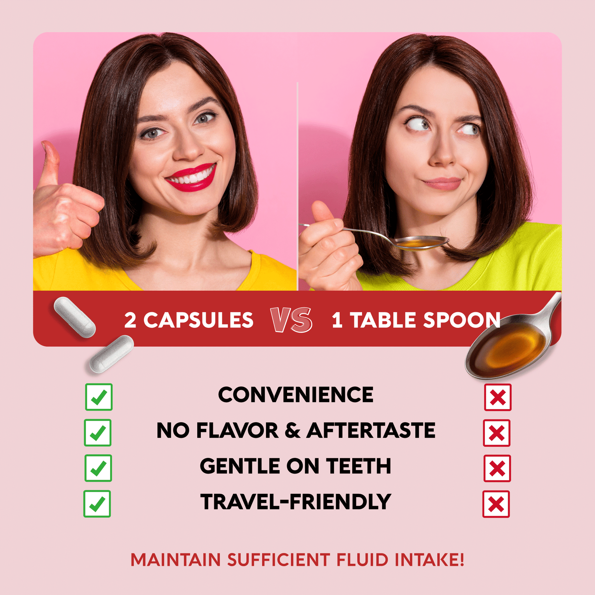 EXTRA STRENGTH DAILY DOSE = 1 TBSP — Experience the full benefits of one tablespoon of liquid Apple Cider Vinegar packed neatly into just two capsules. Our advanced capsule format is fast, convenient, and gentle on your teeth, throat, and stomach lining — offering the same advantages as liquid ACV but without the strong taste, enamel damage, or lingering aftertaste.