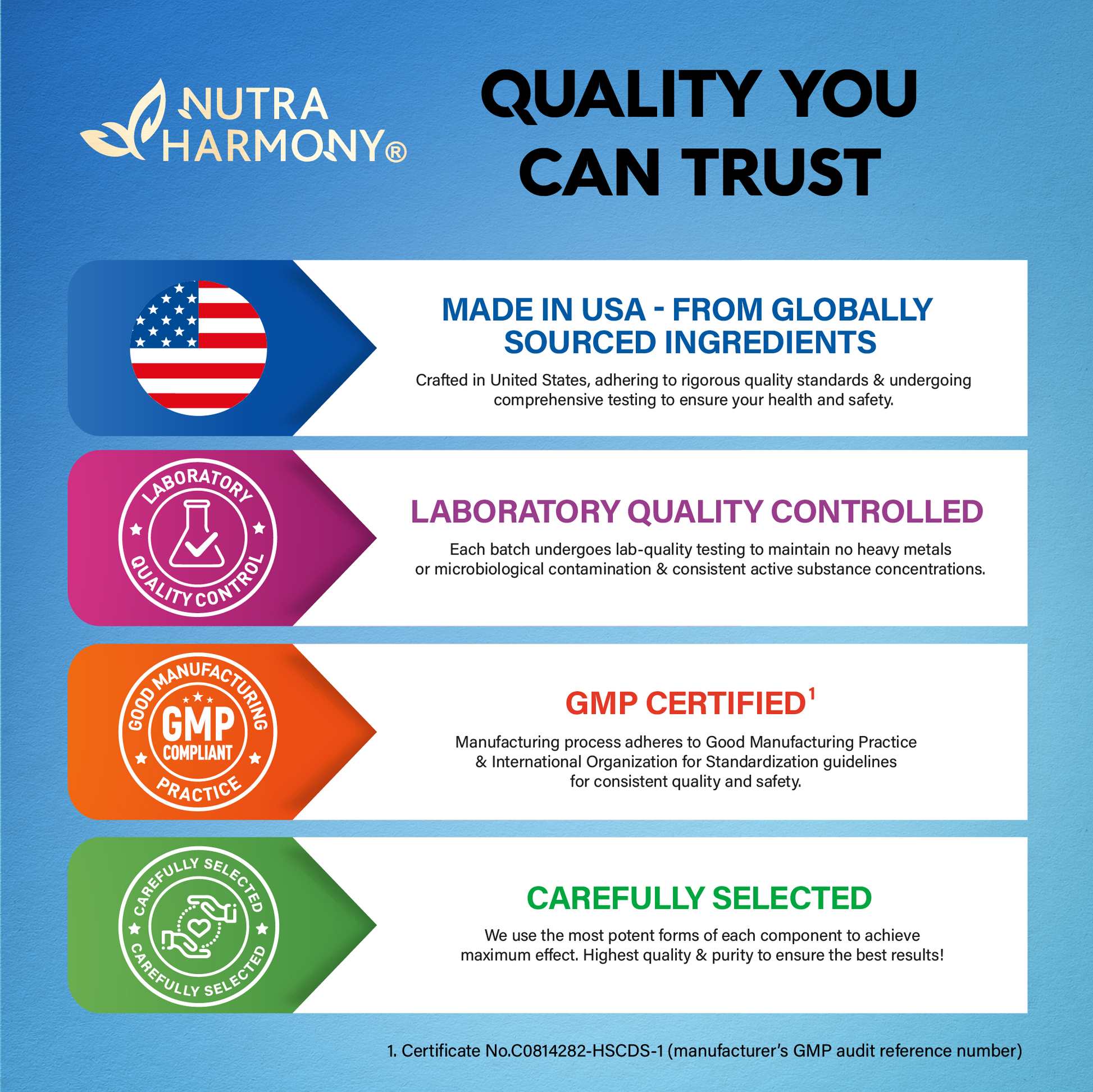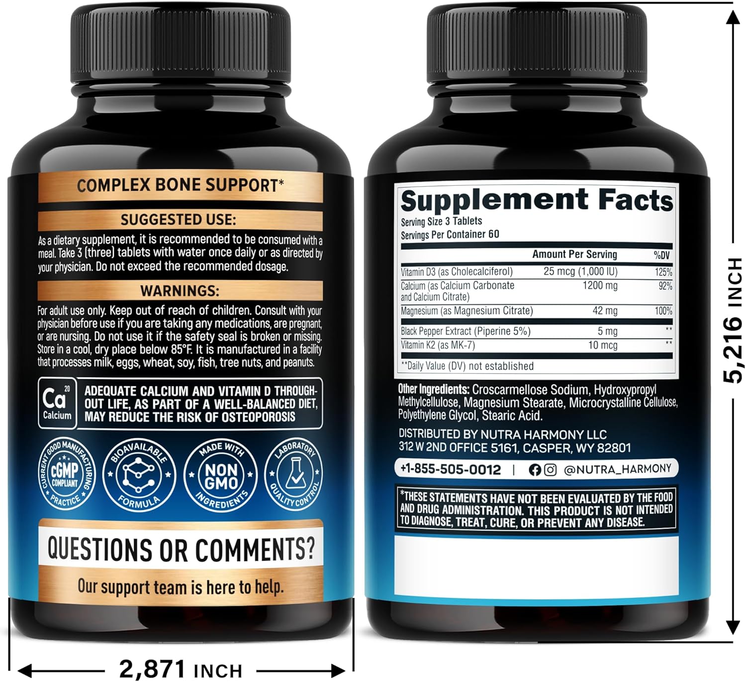 Made in USA With Globally Sourced Ingredients — our Calcium tablets are proudly manufactured in the USA under strict quality control standards. Non-GMO and GMP certified, these Calcium & D3+K2 pills are produced with the most potent & fresh ingredients for maximum efficacy and purity in every batch.