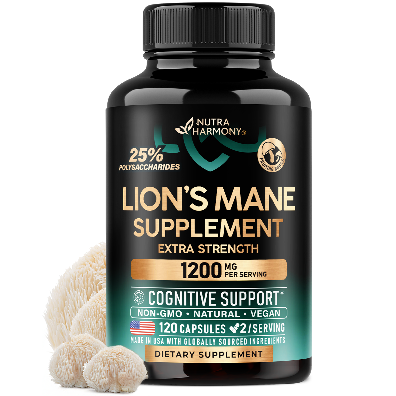 - Lions Mane Mushroom – Each capsule delivers a potent 1200mg dose of lions mane extract, a perfect blend of nature's wisdom and scientific precision. Elevate your brainpower naturally with a powerful mushroom boost to support cognitive health, memory, focus, mental clarity, and overall well-being.