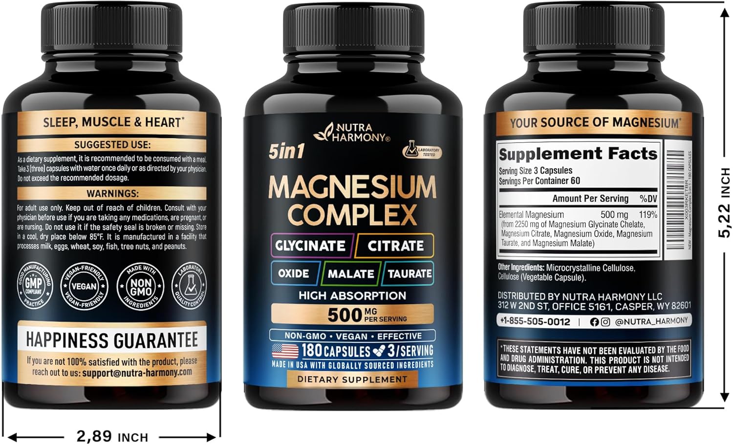 - 5-in-1 Magnesium Supplement — Discover the ultimate Magnesium blend! Our 5-in-1 Magnesium complex is an unrivaled blend of the most potent and effective Magnesium forms, carefully selected to bring you a transformative health experience like no other. A perfect synergy of these powerhouse Magnesium compounds as they work harmoniously to enhance your wellness!