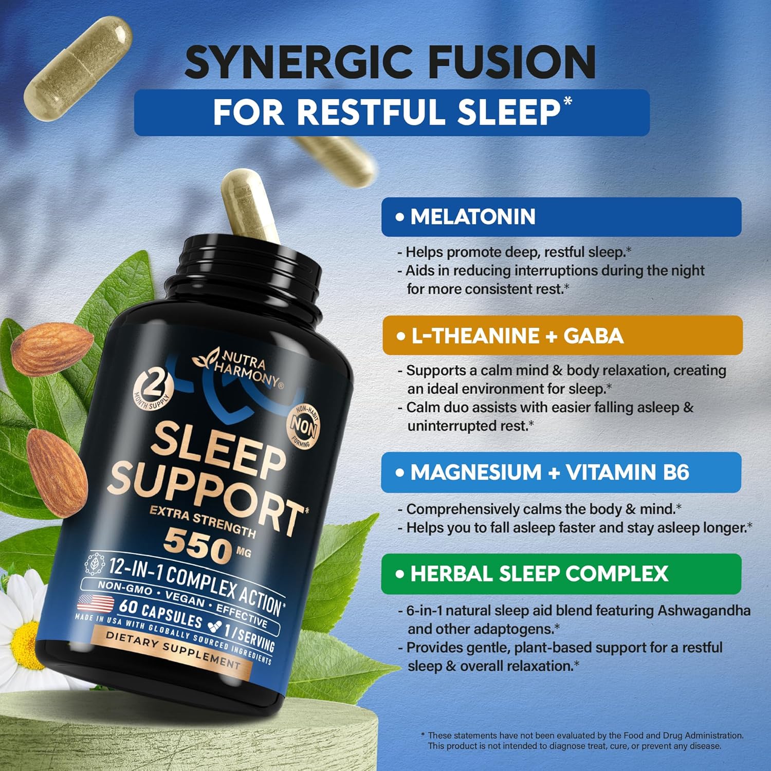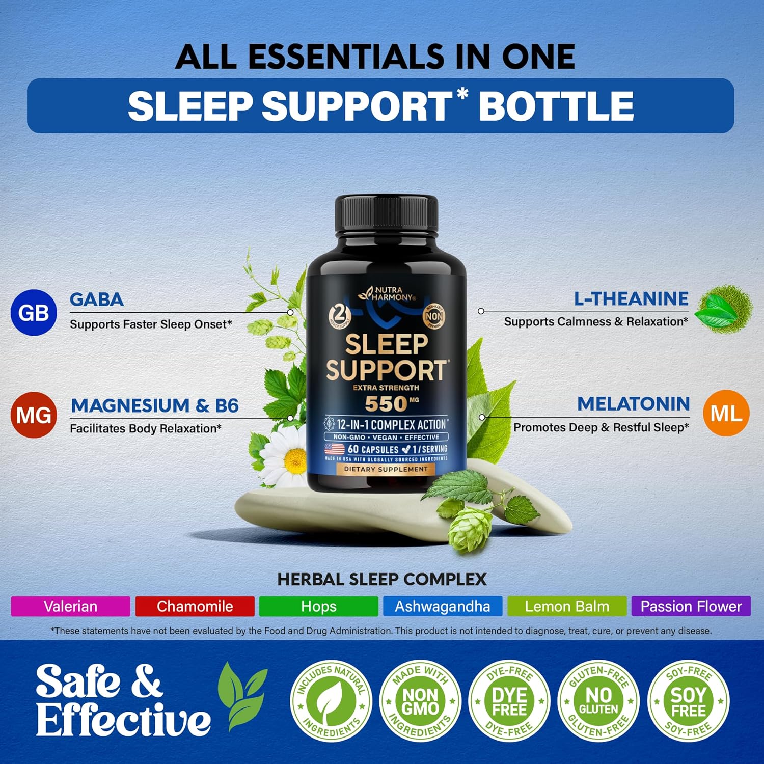 - Extra Strength Restful Sleep Complex — Discover the power of restful sleep with our 12-in-1 essential relaxation complex, formulated with a blend of potent herbs and key nutrients. Sleep Support capsules aid deep, uninterrupted rest, helping you wake up feeling refreshed & energized. Feel the quality sleep, relaxation, calmness, and a peaceful mind, ensuring you unwind after a long day and drift into a restful night’s slumber.