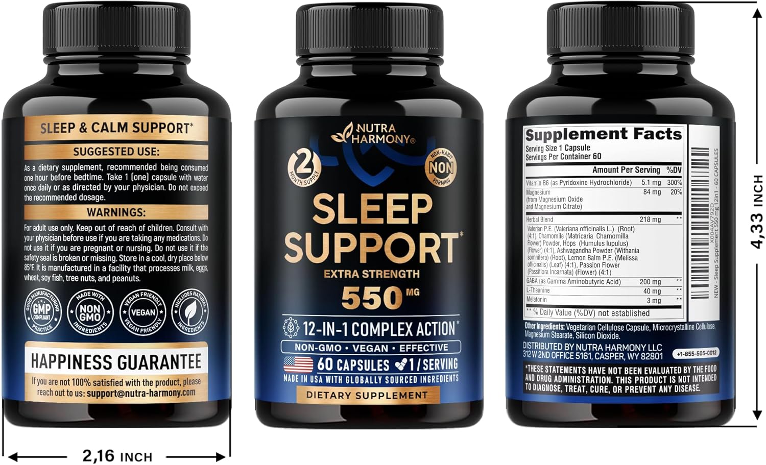 - Non-habit Forming — Sleep Support capsules are carefully formulated to help you experience calmness & relaxation, allowing you to wake up refreshed without grogginess or sluggishness. Unlike other sleep aids, it’s non-habit forming, making it a safe choice for long-term use. Support your natural sleep cycle while maintaining a peaceful state of mind, ensuring restful nights and overall wellness!