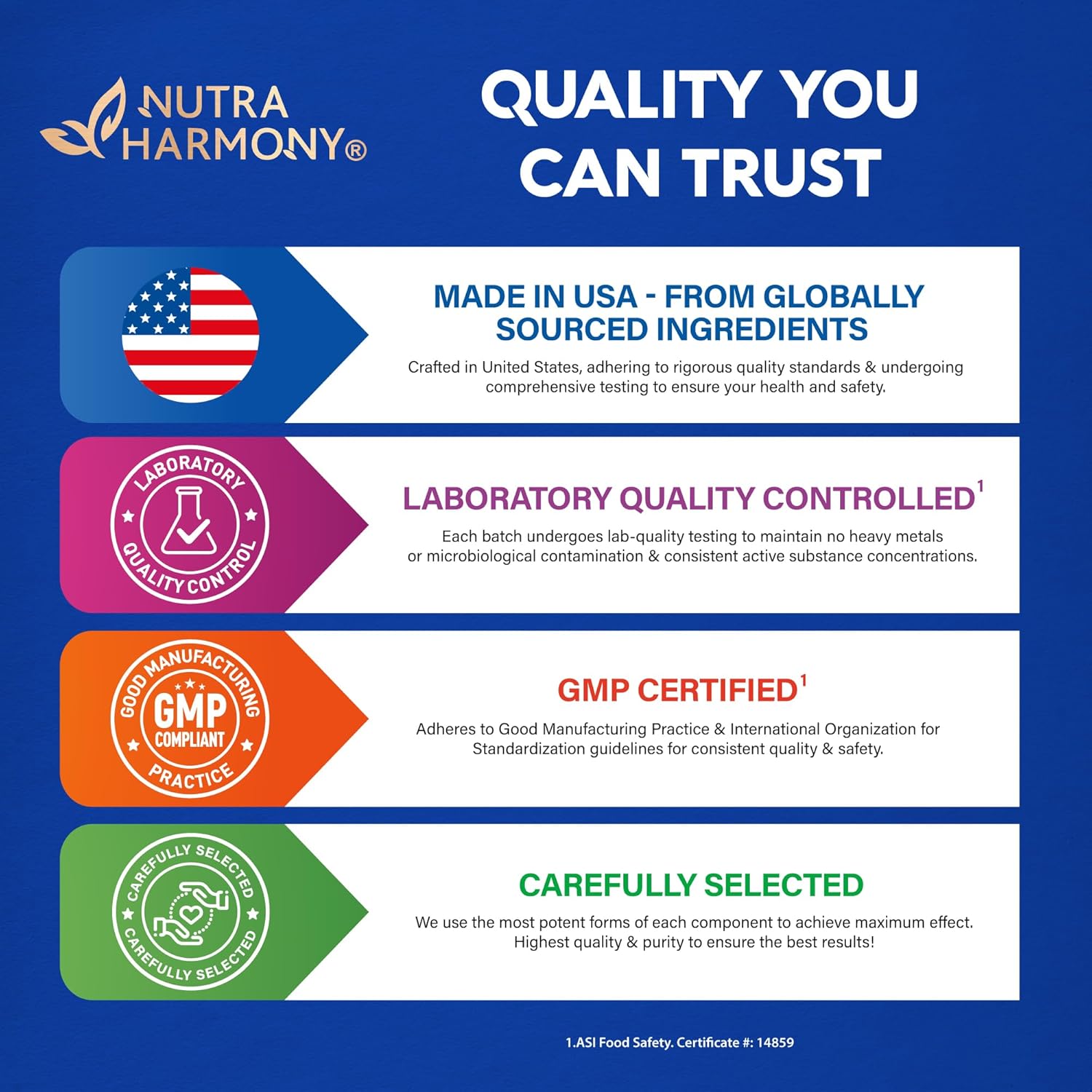 - TRUSTWORTHY SERVICE — at NUTRAHARMONY, we are dedicated to your health. From premium ingredient selection to precision manufacturing, we provide reliable supplements backed by customer-focused care.