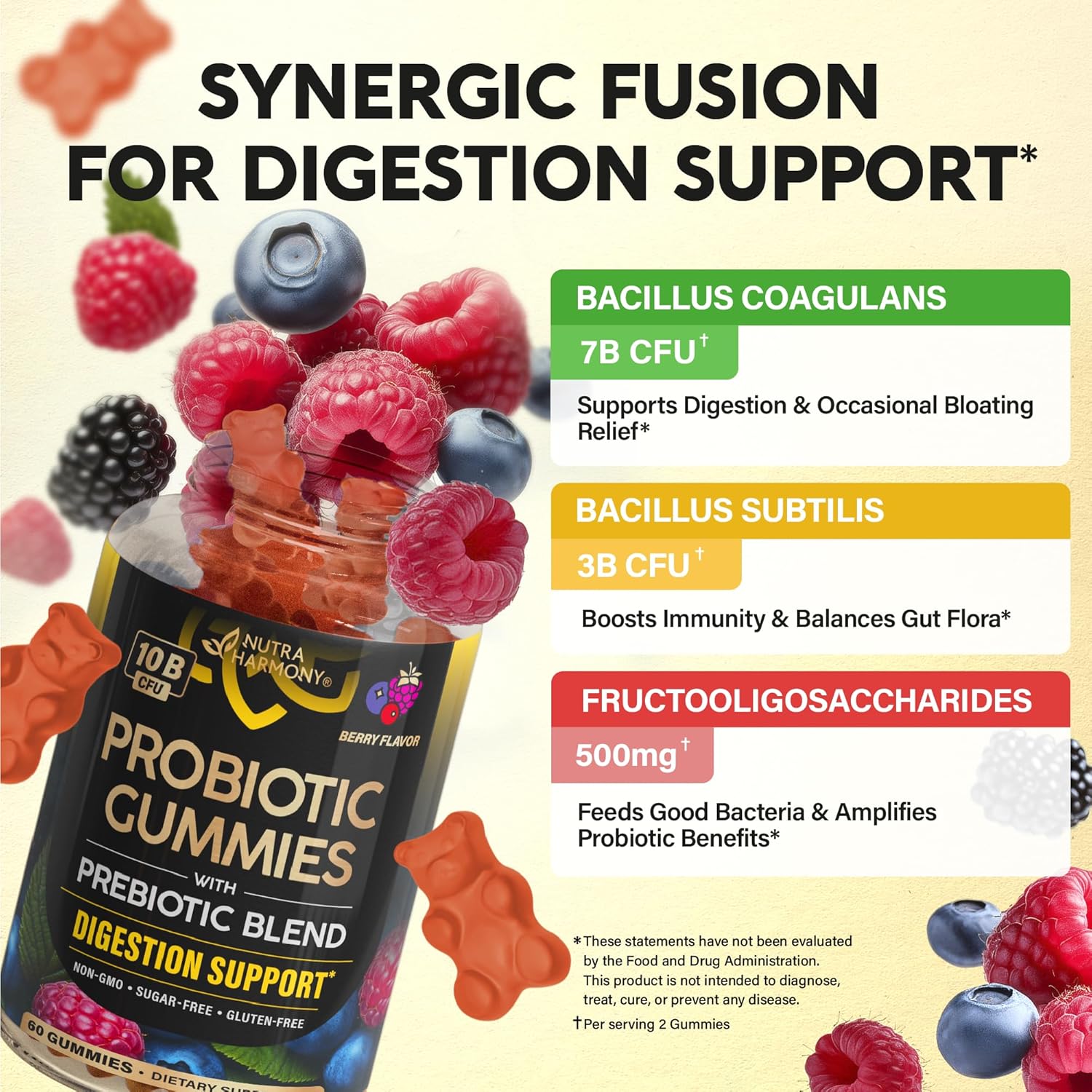 Healthy & Yummy Gummy — experience the benefits of NUTRAHARMONY’s delicious probiotic gummies, crafted with your needs in mind. Enjoy a tasty and effective way to support healthy gut & digestion. Perfect for maintaining your wellness routine with probiotic gummies.
