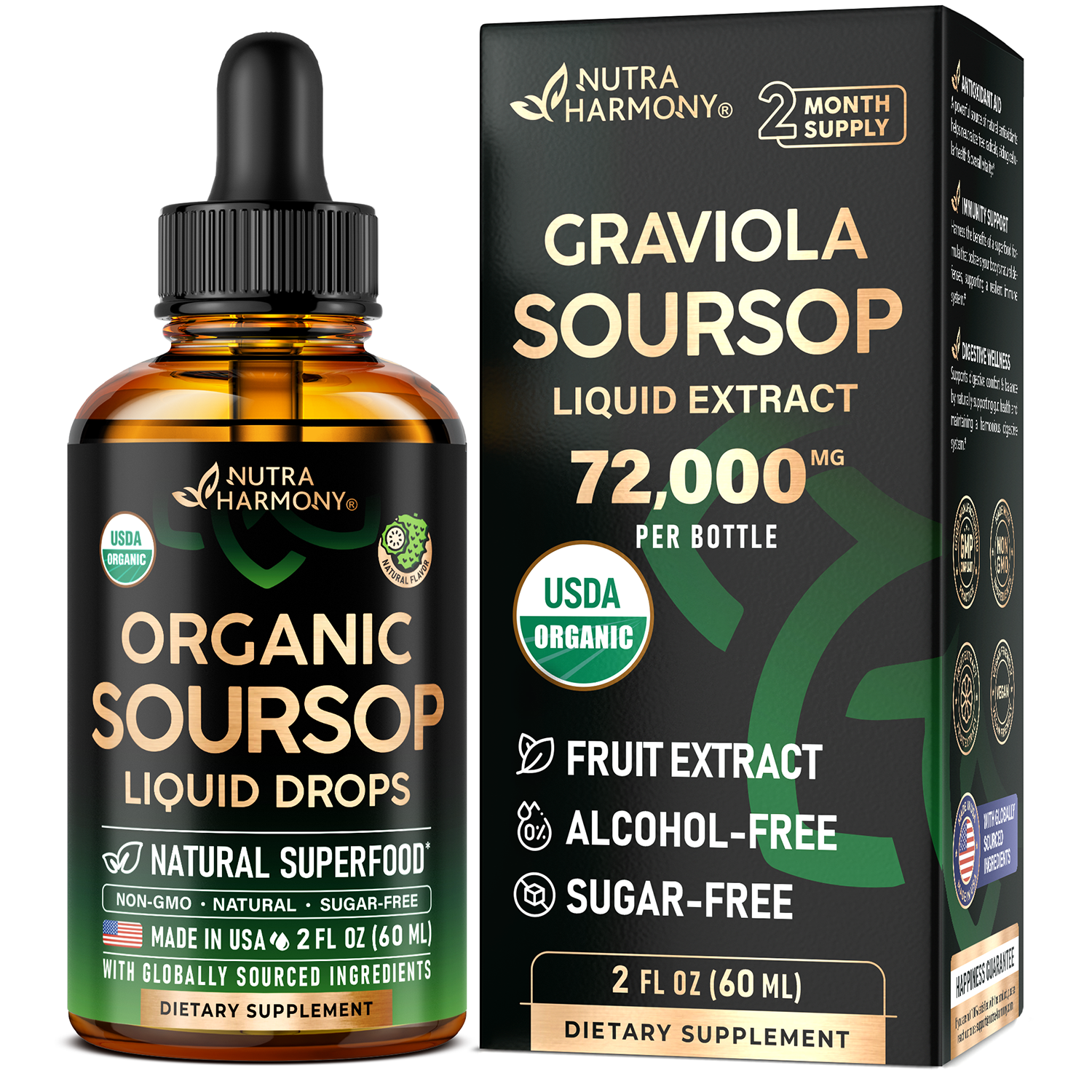 USDA Organic Graviola Soursop — experience the natural power of tropical superfood with a pure, plant-based soursop bitters liquid formula. Made from organic Graviola fruit, organic soursop delivers a clean, refreshing taste along with potent health benefits. Carefully crafted to harness the power of sour sop, organic soursop drops support your body’s natural balance and daily vitality.