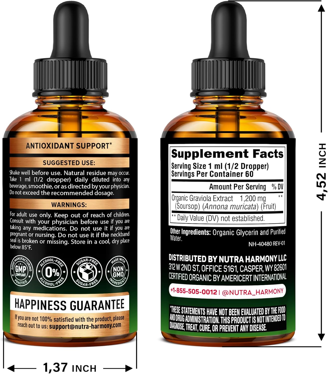 - Natural Antioxidant Support — soursop liquid drops support digestive comfort, aids natural detox, boosts immune defenses, and provides antioxidant protection. It also helps maintain vitality and steady energy throughout the day. Wellness in every drop — nourishing your body naturally for vibrant health and balance.