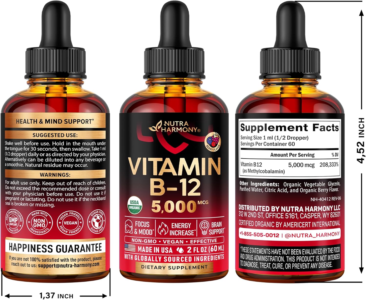 - Liquid Vitamin B12 Drops – a pledge of your vivacity and energy! B12 5000mcg – unbeatable & tasty support for your health goals! Formulated to support optimal levels of the vitamin to the body through fast absorption. B12 drops support mood, maintain brain health, and increase energy production.