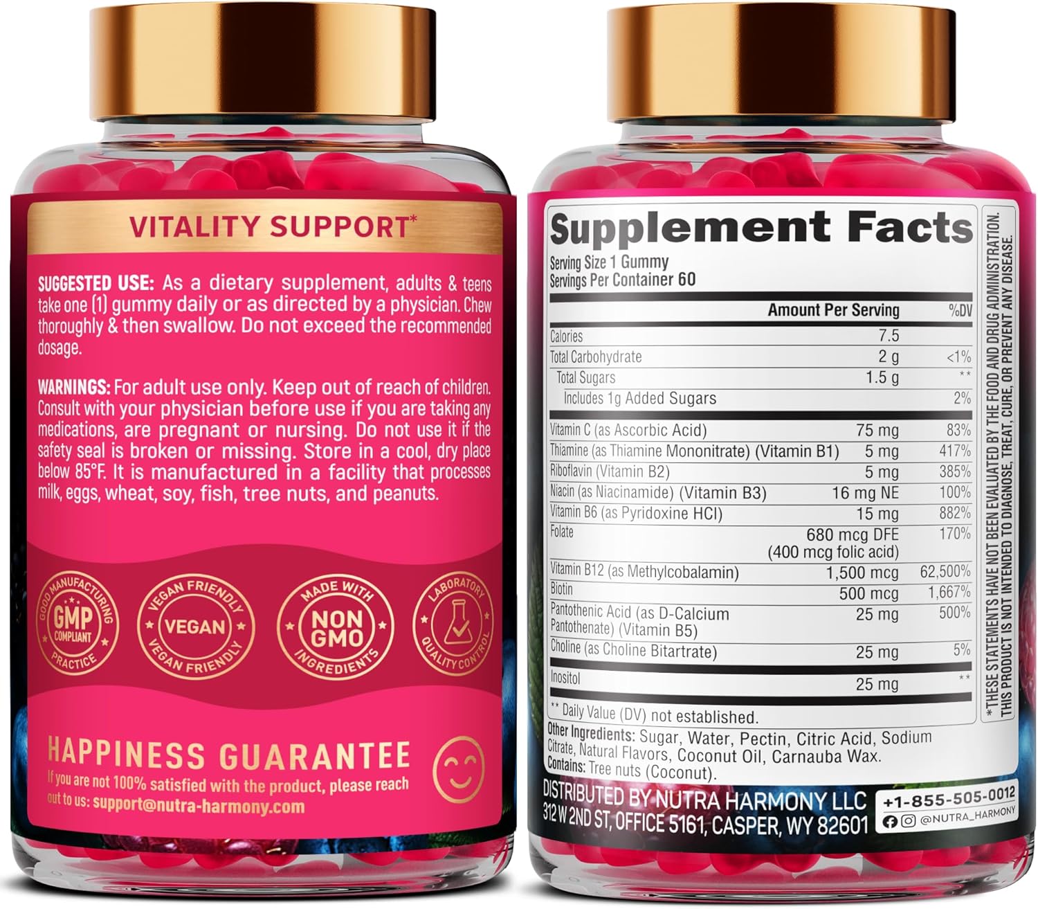 - Berry-flavor, Delicious & Effective — B-complex vitamins in gummy form designed to be highly effective, offering the best support for energy & overall wellness. Our vit B complex vitamins are lab-tested, non-GMO, vegan, and gluten-free — a smart and healthy choice for everyone seeking trusted b-complex vitamins in an easy-to-take gummy format.