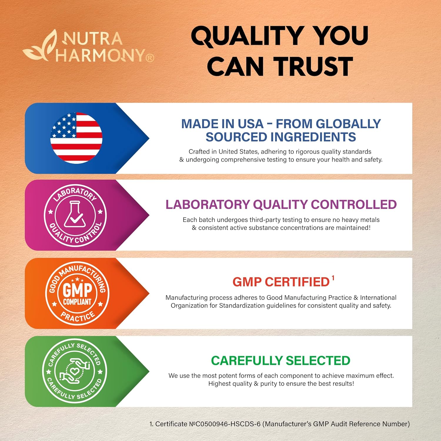 PREMIUM QUALITY, MADE IN USA – manufactured in the USA in a GMP-certified facility using high-quality ingredients. Each batch is third-party tested for purity, potency, and quality.